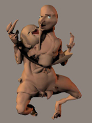 Das Projekt biogenart begann Mitte der neunziger Jahre als das menschliche Gnom schon fast entschlüsselt und verstanden schien. Die Postulate beliebiger Gestaltbarkeit des Biologischen weckten einerseits utopische Wünsche, andererseits erzeugten sie diffuse Ängste. In diesem gedanklichen Spektrum lag der Keim für biogenart. In der Annahme, dass zumindest in der Theorie gentechnologisch alles möglich sei, sollten die möglichen Konsequenzen reflektiert und bildnerisch bearbeit werden. 3D-Computergrafik für die Figurengestaltung und 2D-Computergrafik und Webdesign für deren Präsentation sollten das Mittel sein. Als Rahmen dient ein fiktives Institut, das gentechnisch schon in der Lage ist, hochentwickelte Lebewesen frei zu gestalten. Dieses Institut realisiert nichts von dem, was für die Gentechnologie positiv ins Feld geführt wird, überspringt kleinliche Menschenverbesserungen und beschäftigt sich schon mit postevolutionären Wesen.Die ersten Produkte waren Anti-Figuren – digitale Krüppel – die als Gegenposition zu gängigen Vorstellungen vom idealen Menschen (noch schöner, schlauer, stärker, langlebiger) konzipiert waren. Im nächsten Schritt wurde ein Institut mit diversen Abteilungen und virtuellen Mitarbeitern konstruiert. Es wurden Kategorien für innovative Produktlinien entwickelt, Figuren produziert und deren spezifischen Merkmale beschrieben. Die Entwicklung einer Corporate Identity, deren Übertragung in eine Webpräsenz und in eine Messepräsentation mit gedruckten Ausstellungstafeln bildete den Präsentationsrahmen. Die Arbeit am Projekt entwickelt sich stetig, in dem sich Recherche in relevanten Wissensbereichen, die Entwicklung des Portfolio und der Corporate Identity ergänzen. Aus dem Internetfake wurde so langsam ein ernsthafter Versuch, über die realen Bedingungen von innovativen Wesen nachzudenken. Zu fragen war, wie Wesen aussehen könnten, die weder die Evolution mit dem Anschein menschlicher Selbstbestimmung fortführen, noch deren bloße Karikatur sind. Fragen der Genetik (Was geht wirklich?), der Evolutionstheorie (Wie hängen körperliche Erscheinung und Fortpflanzungserfolg zusammen?) und der Ästhetiktheorie (Was definiert das Hässliche?) wurden berücksichtigt. Je tiefer ich in die Materie eindrang, um so deutlicher wurde, dass allein die Negation des evolutionär determinierten Wunsches nach besserer Kognitions- und Vitalleistung nicht recht weiterführte. Für eine wirkliche Innovation müssen zwei grundlegende Forderungen erfüllt sein: Postevolutionäre Wesen müssen zumindest partiell anthropomorph bleiben, damit sie als Weiterentwicklung erkennbar sind, und sie dürfen nicht einfach nur aus dem vorhandenen Fundus der Biomasse collagiert werden. Ein strategischer Lösungsansatz für die Konzeption von biogenart-Modellen fand sich darin, den evolutionären Selektionsdruck und die konkreten Lebensbedingungen zu ignorieren. Dieser Vorgabe folgend und mit zunehmendem Respekt vor der Komplexität der Problemstellung und der vorhandenen Evolutionsleistung wird das Projekt biogenart auch in Zukunft weiterentwickelt, verbessert und präsentiert werden.